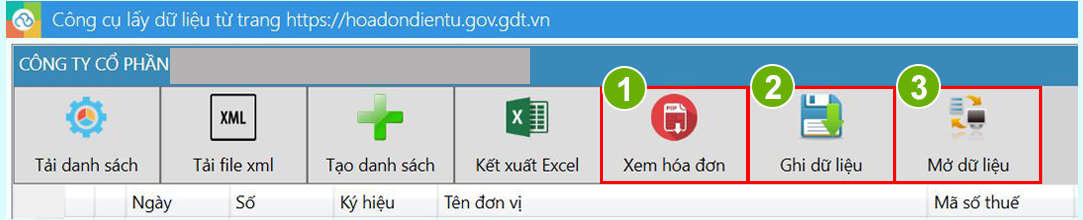 - Ghi dữ liệu: Dùng để lưu toàn bộ dữ liệu đang thực hiện. Hữu ích trong các trường hợp như danh sách hóa đơn nhiều, thời gian tải file XML lớn nên sau khi lấy dữ liệu thành công thì lưu lại để lần sau muốn xem không phải chờ đợi để tải lại dữ liệu hóa đơn. Hoặc người dùng đang thiết lập dở danh sách excel muốn lưu lại để lần sau tiếp tục hoàn thiện.
