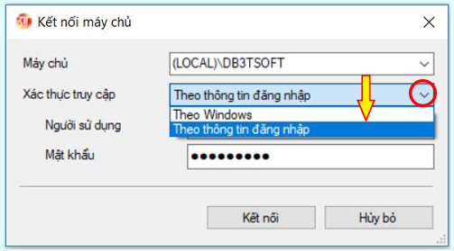 - Thông tin đăng nhập gồm: Máy chủ - Người sử dụng - Mật khẩu (mật khẩu thường mặc định là 3TSoft.vn) tương tự như thông tin đăng nhập vào phần mềm.