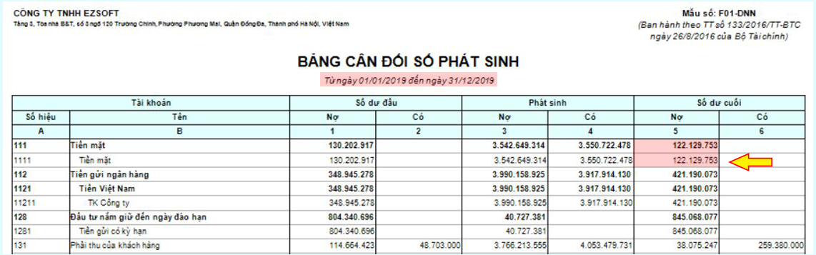 | 4 | Số dư đầu năm | Là số dư cuối kỳ của kỳ kế toán năm trước. Thông thường là số dư cuối 31/12/N-1. Tương ứng số dư Bên Nợ hoặc Bên Có. |